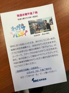 祈願が終わる頃にIBCさんの『わが町、バンザイ』さんが取材に来ているとのことで