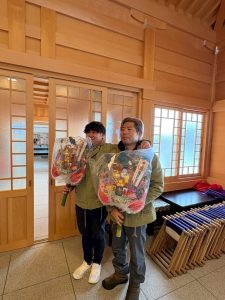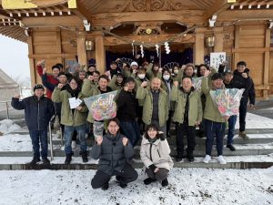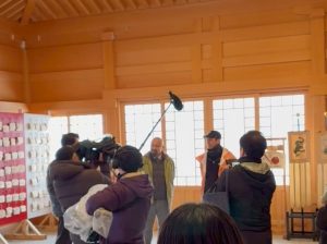 祈願が終わる頃にIBCさんの『わが町、バンザイ』さんが取材に来ているとのことで