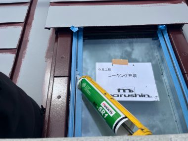 新しいコーキングを充填後、ヘラで押さえて整えていきます!